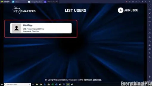 Une fois connecté à l'application IPTV Smarter, vous serez redirigé vers la liste des utilisateurs. Sélectionnez le profil que vous venez de créer.