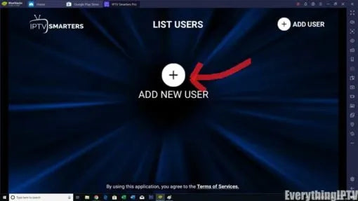 Ouvrez l'application IPTV Smarters et cliquez sur « Ajouter un nouvel utilisateur »